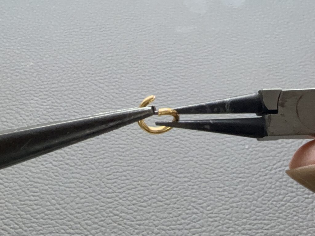 「カンを開ける→パーツを繋ぐ→カンを閉じる」